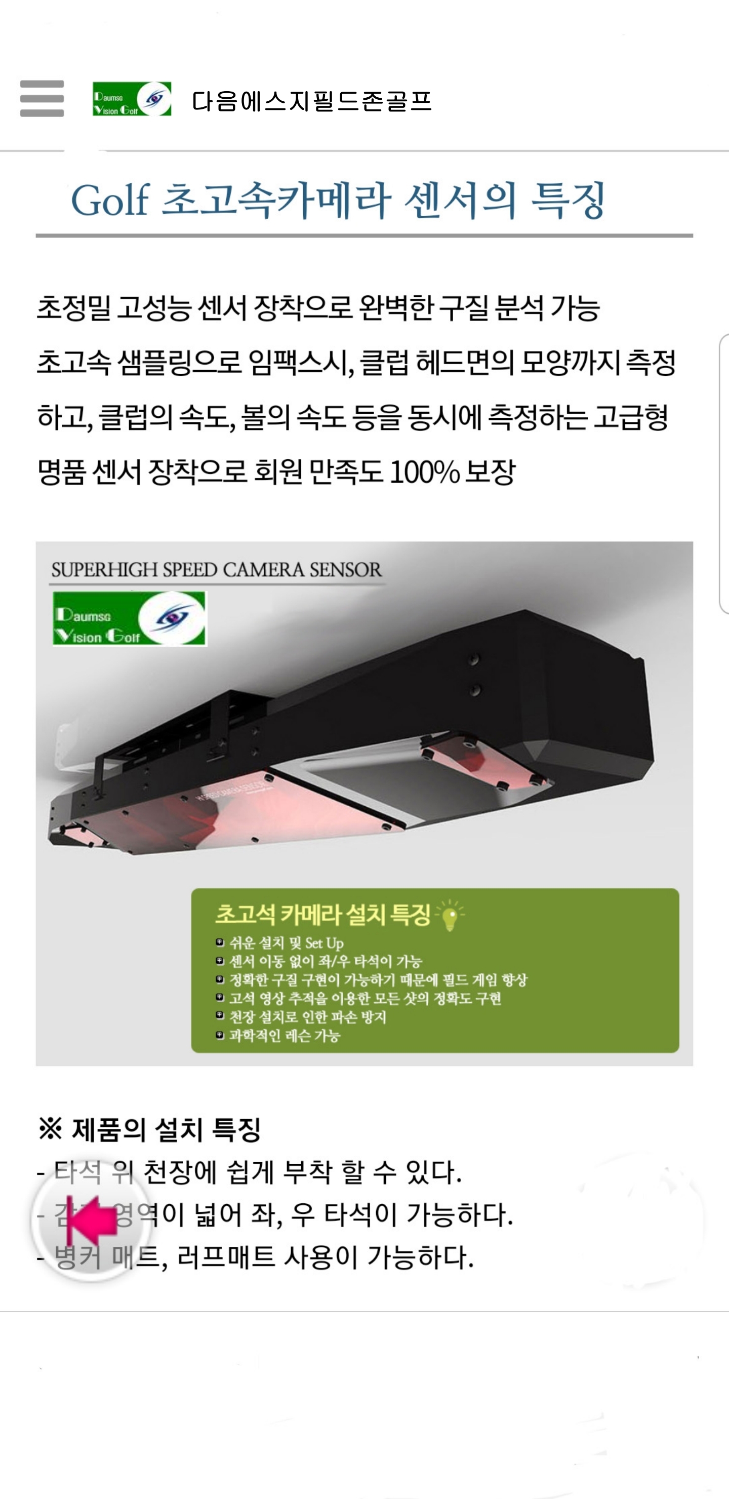최근 개발된 초고속카메라센서 스크린골프 다음에스지 비젼골프는